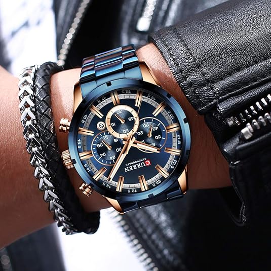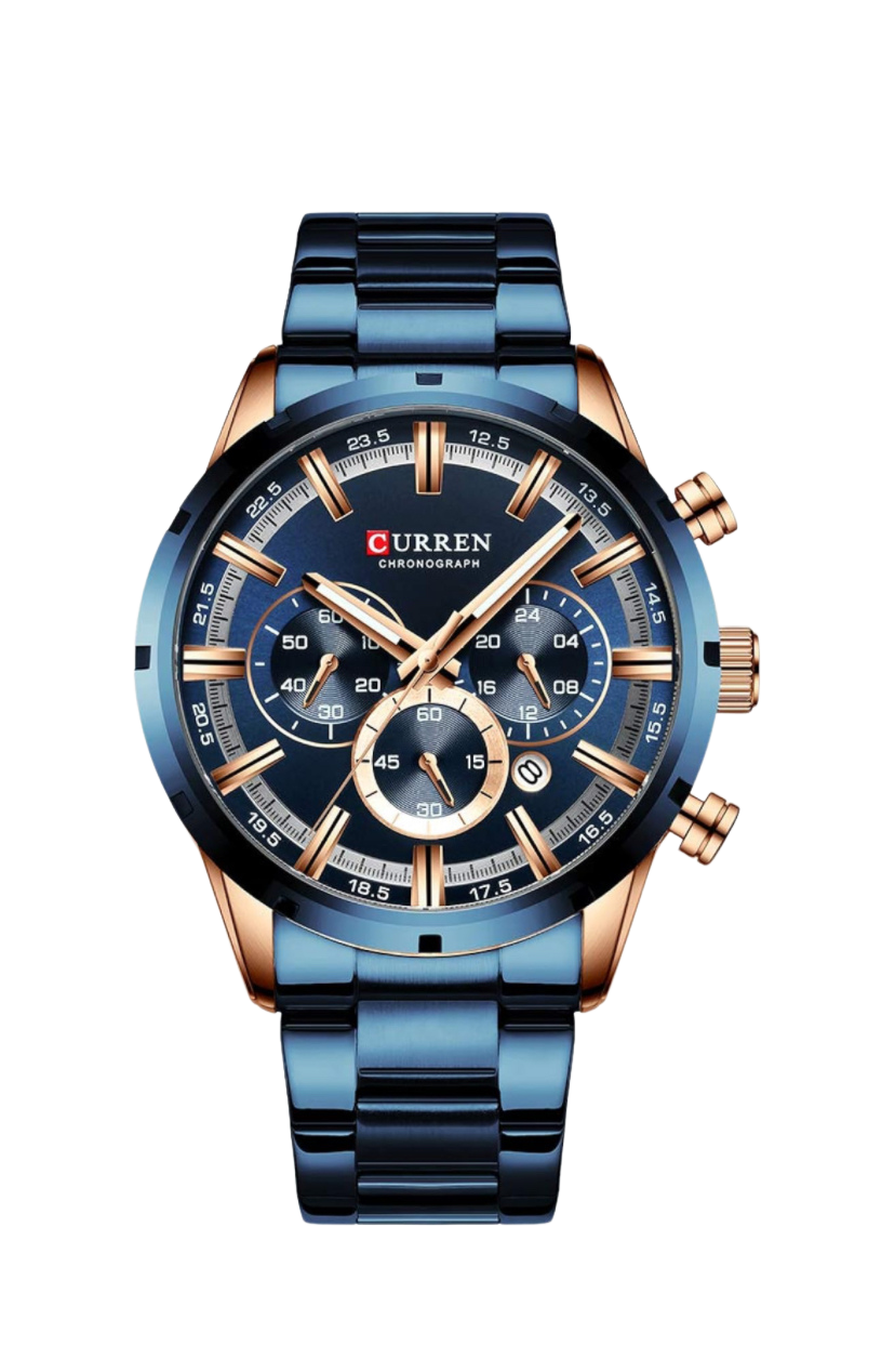 Men's luxury watch~Aqua Veil, a timepiece born from ten years of craftsmanship, patience, and passion. Sculpted in luminous rose gold and kissed with a deep oceanic blue, this luxury watch is more than an accessory — it’s a story told in seconds.