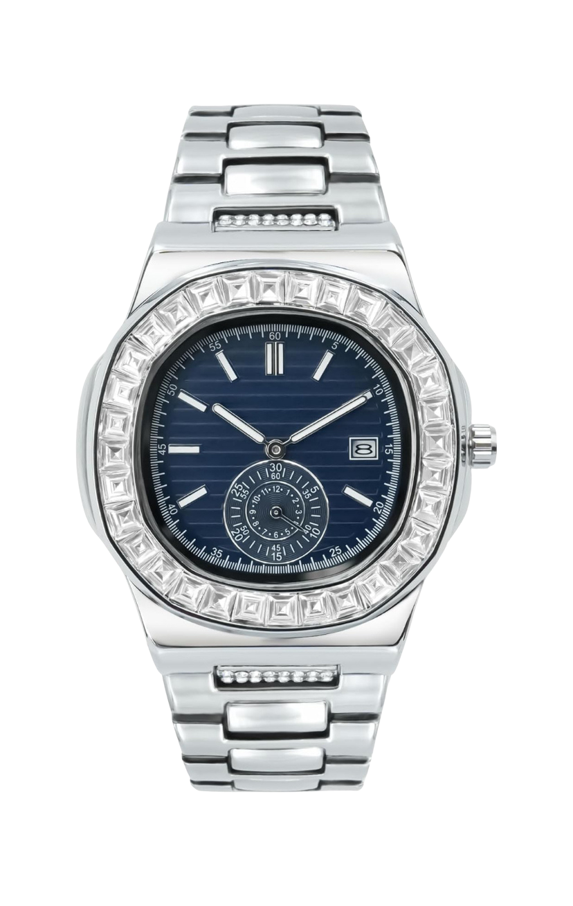 Men's luxury watch~Where modern precision meets regal design, the Azzurro Regale is a refined expression of confidence and craftsmanship. Featuring a bold 42mm case in deep sapphire blue, this quartz-powered timepiece offers a three-hand analog display with a discreet date window positioned at 3 o’clock—ensuring both elegance and practicality.