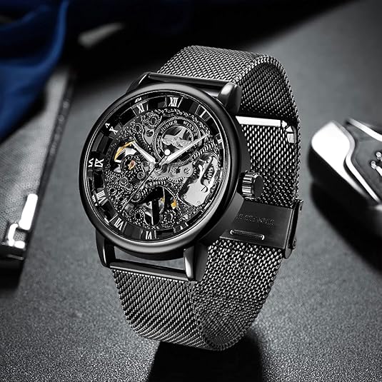 At its core lies an imported automatic mechanical movement, requiring no battery — only the rhythm of your day. A full wind sets its gears into elegant motion, ensuring precision that stays in step with your every move.